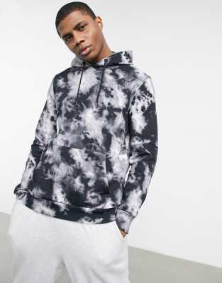 Bershka Tie Dye Hoodie In Black White Asos